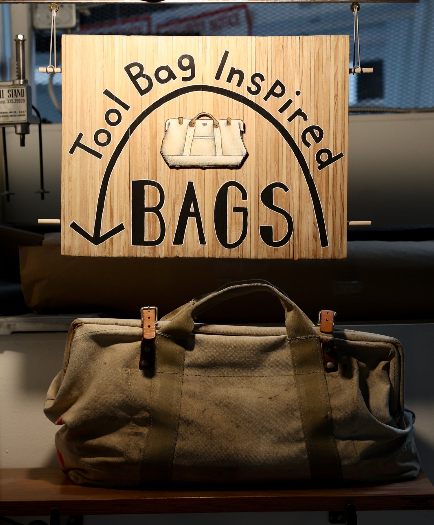 This is the old mason's bag I found in the back of my parents' shed growing up that inspired my line of "Tool-Bag-Style" bags. I loved the way it opened, and I thought with a few added details it would be a really fun bag to carry.