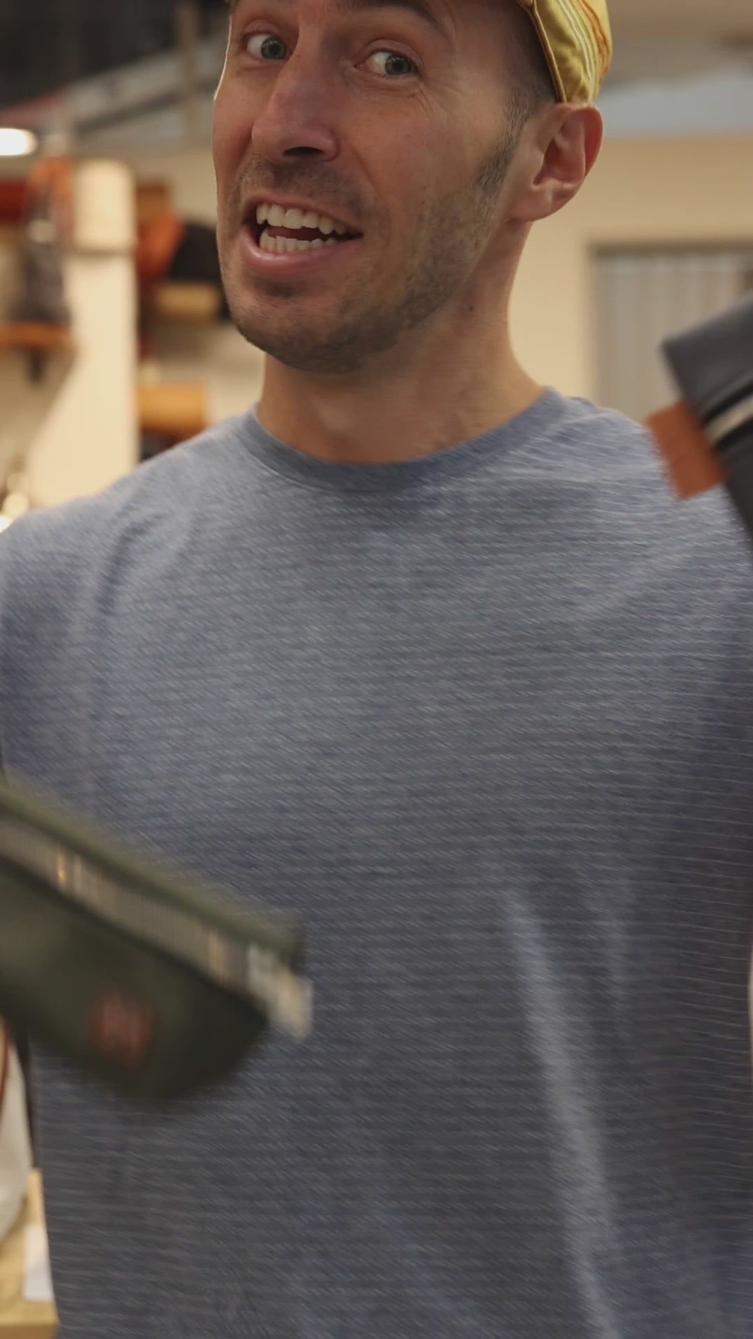- Striped denim interior lining